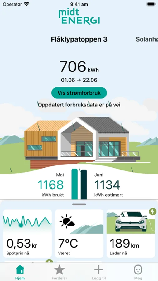 Last ned Midt Energi-appen og få kontroll og oversikt over ditt strømforbruk. Med appen kan du lade elbilen når strømmen er billigst, koble opp smarte produkter og se hvilke utslag årstid, vær, helger og ferier har på strømforbruket ditt.