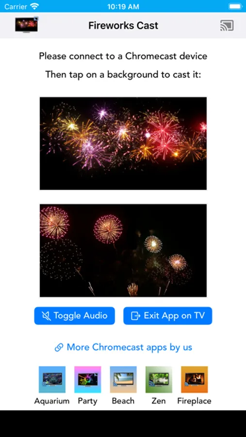 You can choose from two types of vibrant firework displays as the live background for your TV (that has a connected Chromecast device). You can select the background with your iPhone or iPad.