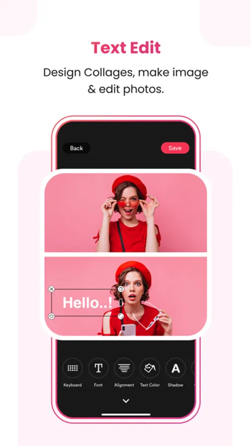 - Add Blur & Texture Background, Text, and stickers to Collage.