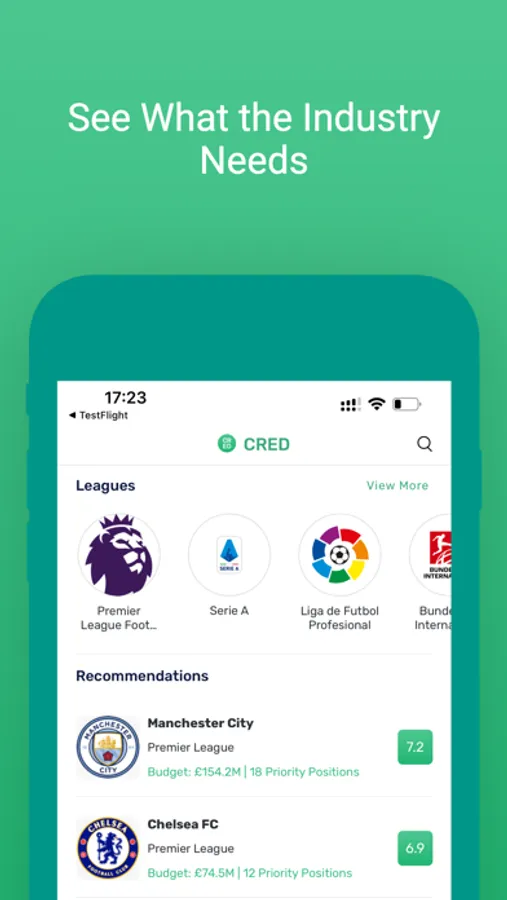 CRED Football (Soccer) enables agencies and clubs to identify and transfer players across the world.
