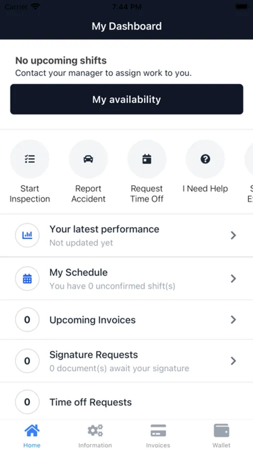 Interacting with our business management platform, schedule shifts, inspections, chat.
