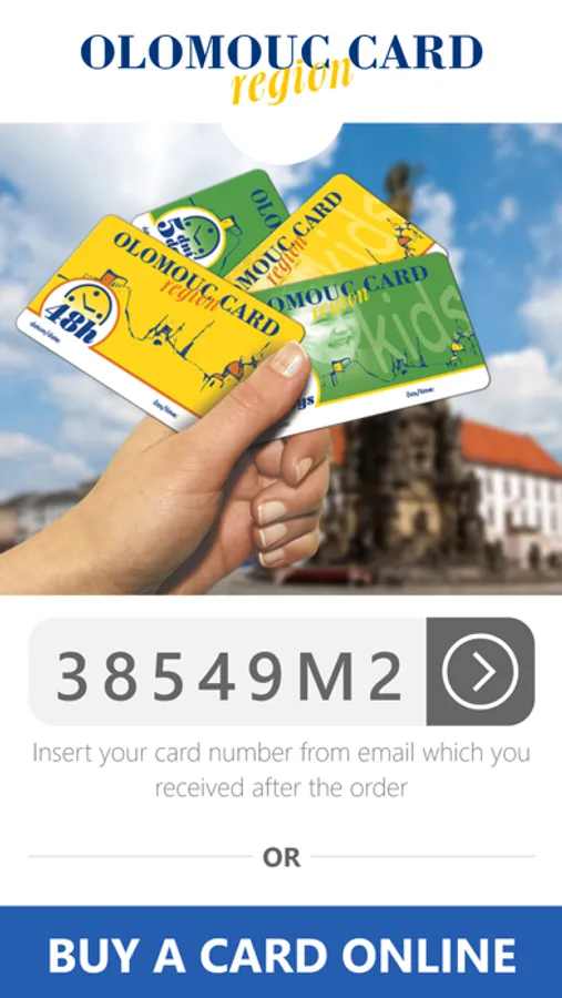 Uplatněte svou digitální Olomouc region Card v aplikaci vložením unikátního ID z e-mailu a