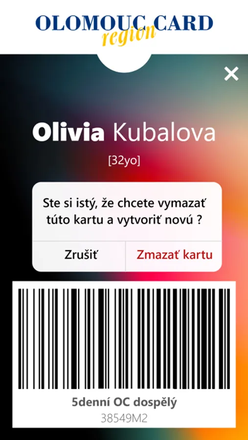 Po potvrzení se aplikace aktivuje a vytvoří vaši digitální Olomouc region Card.