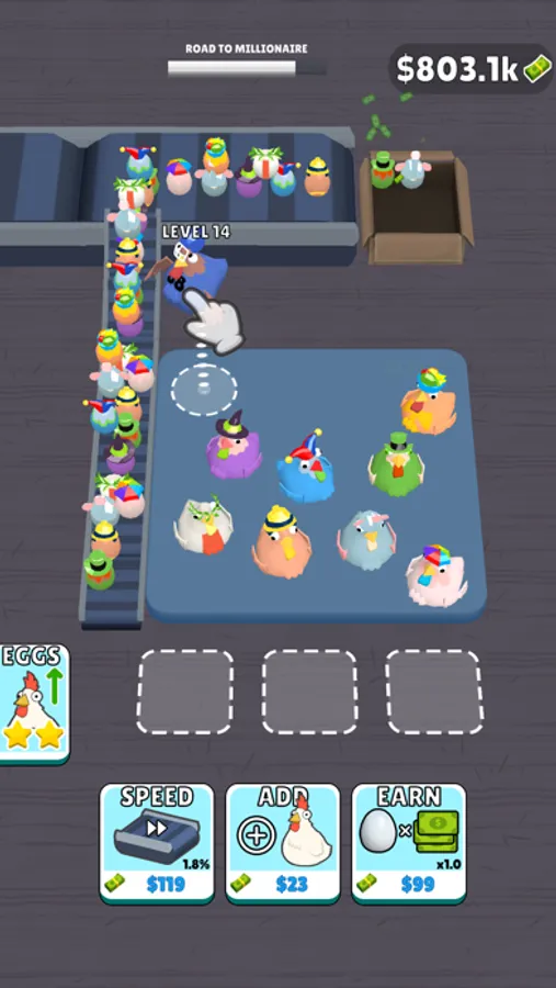 - Merge and upgrade Chickens to improve egg quality and speed.