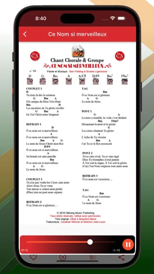 - Ajout vos chants favoris, de vos notes solfège ou son instrumentale...