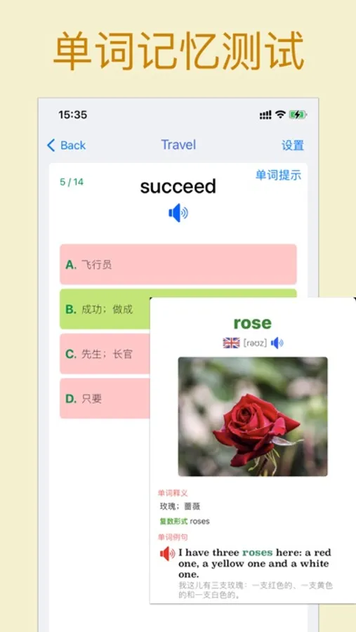 结合软件中的词汇学习,测试及生词本工具,多种方式增强记忆效果,立体记忆.