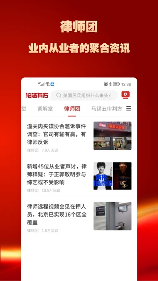 “论法有方”APP以法律新闻、资讯为切入点,为用户提供法律宝典、法律案例资源库、仲裁、律师服务以及VR、AR云展厅为核心的客户端产品。