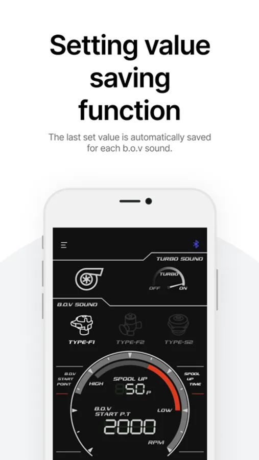 Each BLOW OFF VALVE sound can be set to the desired value, and the last setting value is automatically saved.