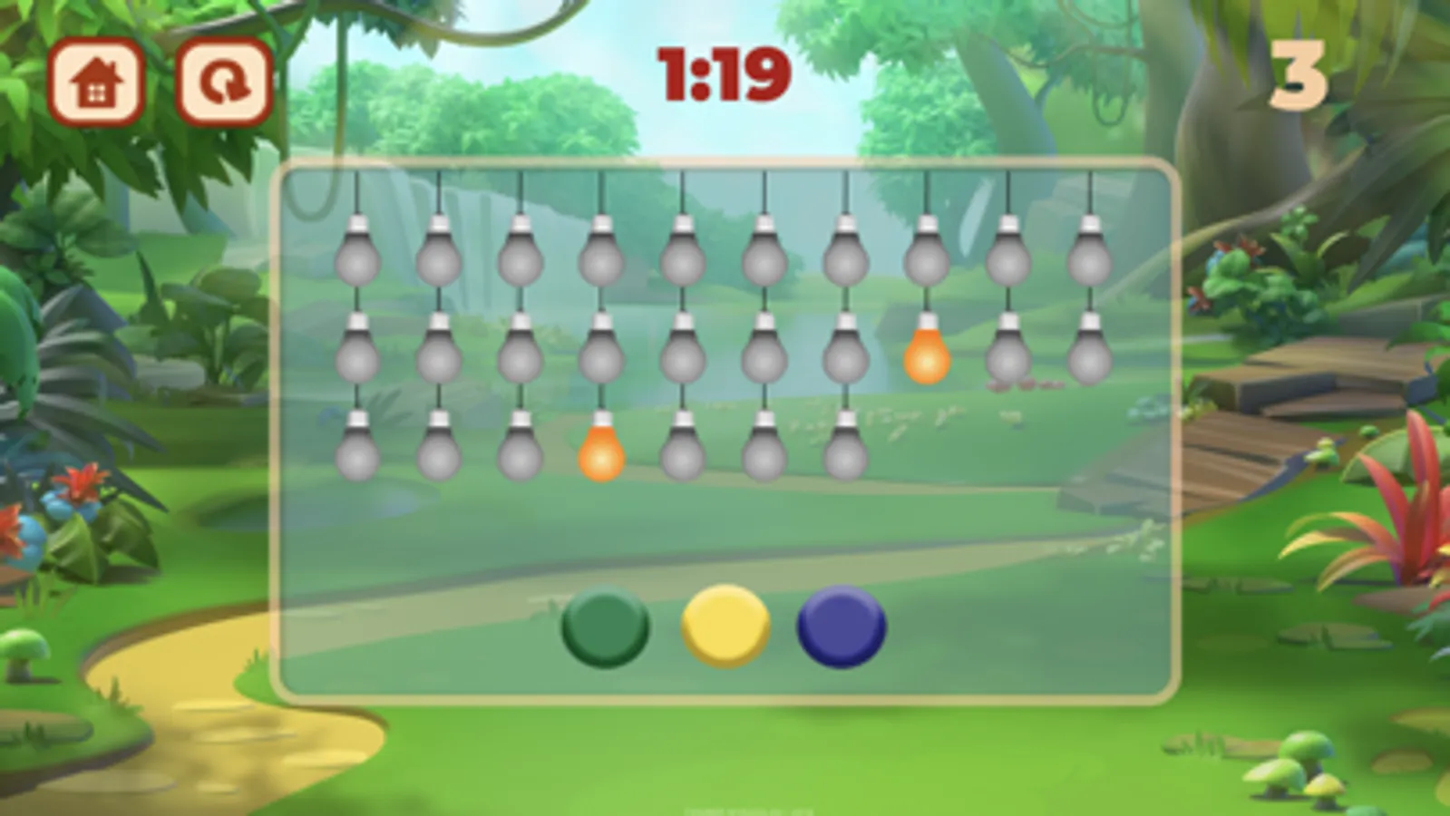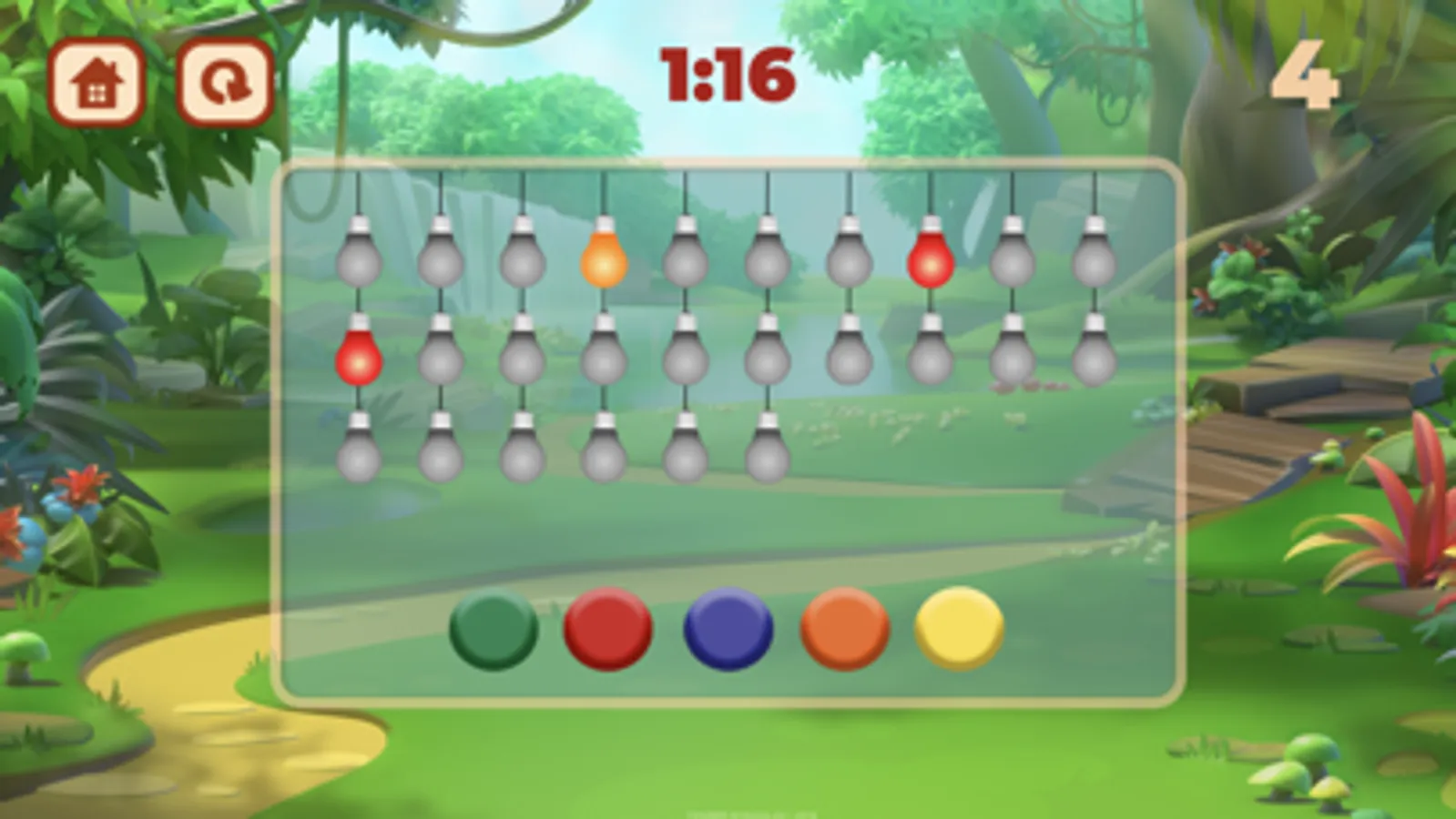The light bulb will stay on for a certain amount of time and then turn off. Take a quick look at the color of that light bulb and press the button of the same color as the bulb.