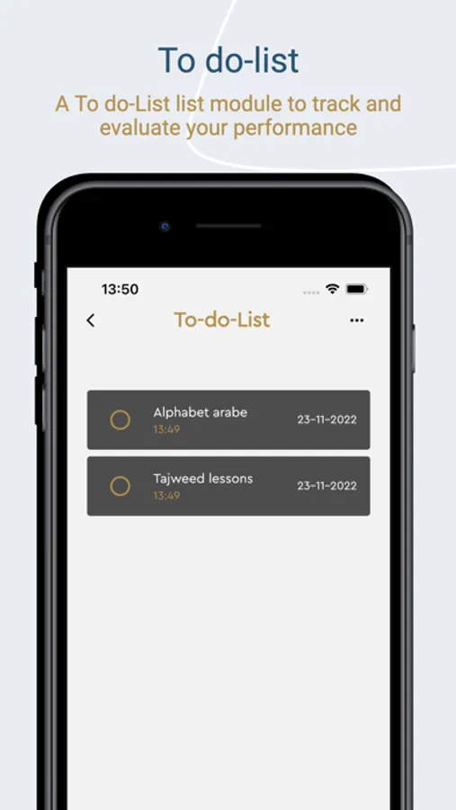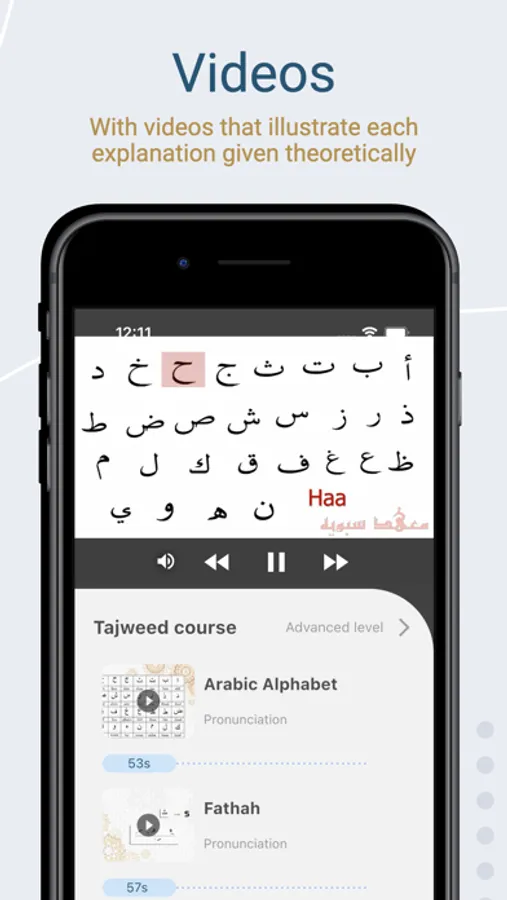 It contains guides, recitation of the Quran by Sheikh Khalil Hussary and Sheikh Sadiq MashAwi with his students (peace be upon them), videos of the Arabic alphabet and its morphology and a To do-list module to keep track on your learning.