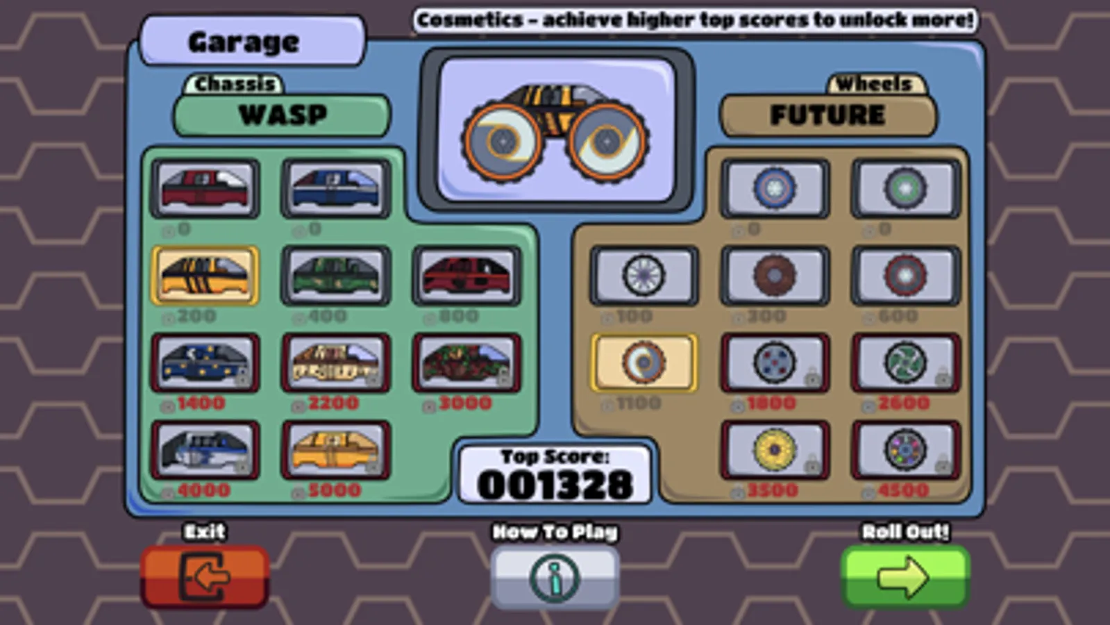 -Skill based unlocks: A variety of wheel and chassis styles can be unlocked, the higher the player scores.