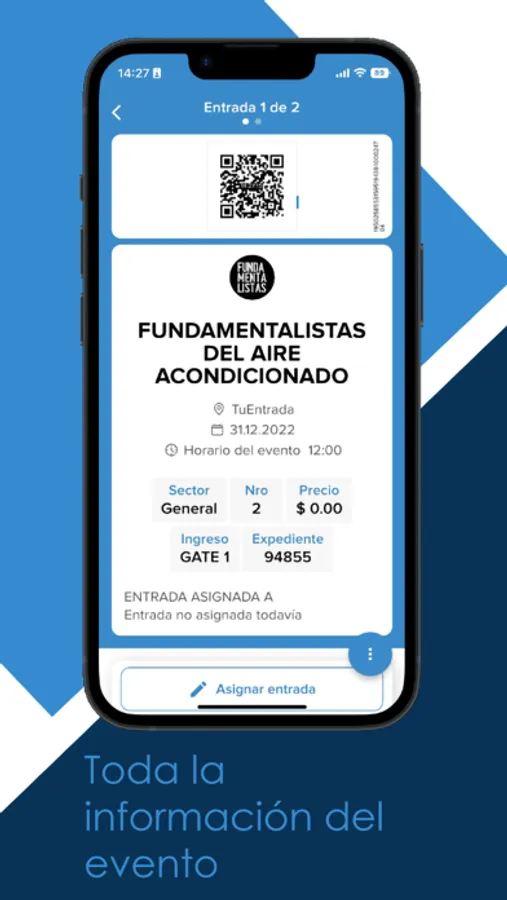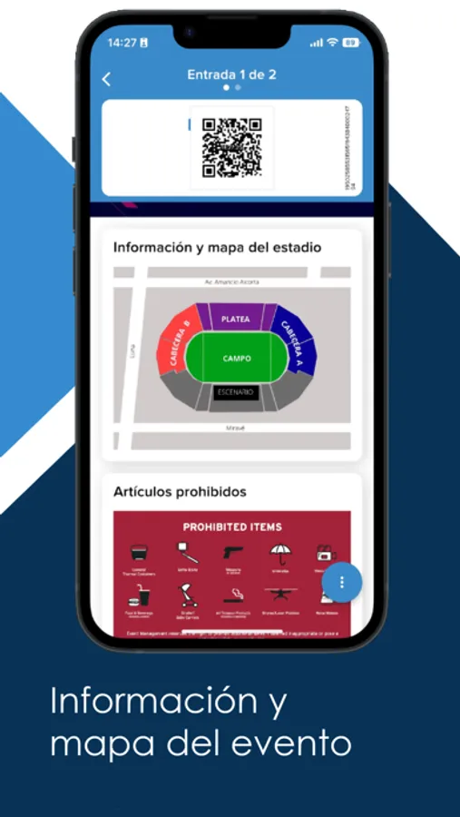 Acceder a tus eventos solo mostrando tu celular y el QR para el ingreso.