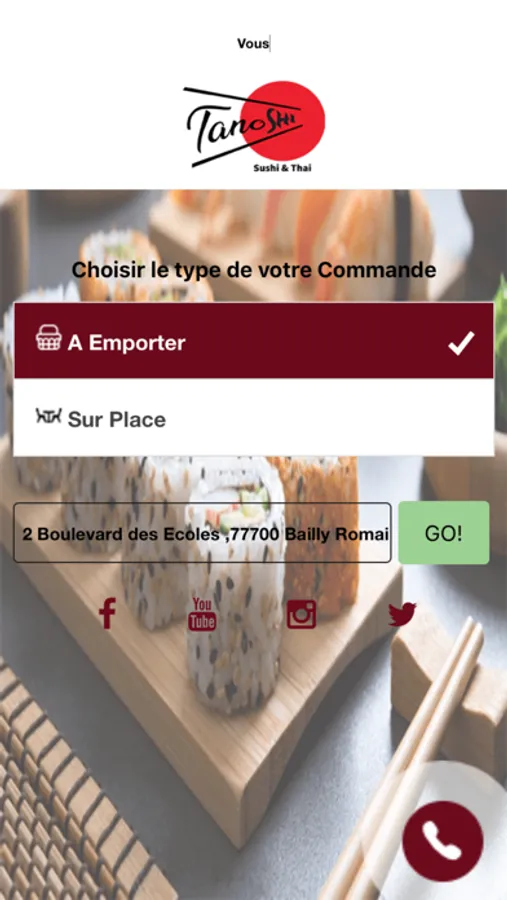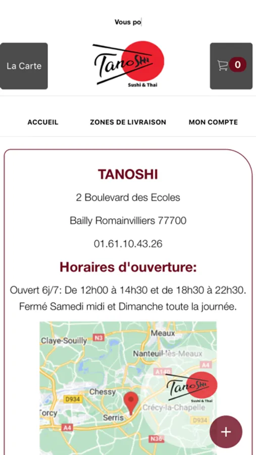 L'application TANOSHI vous permet de commander en ligne ou par téléphone via votre application. Vous pouvez consulter notre carte et choisir vos produits.