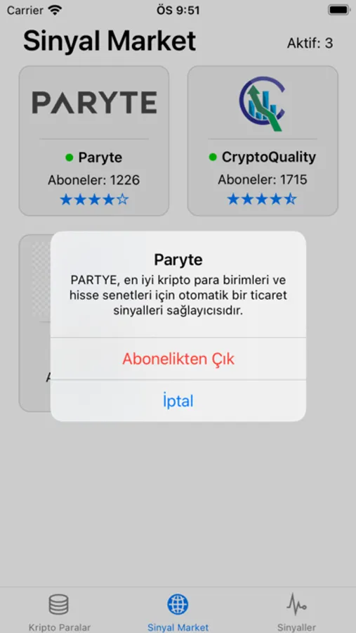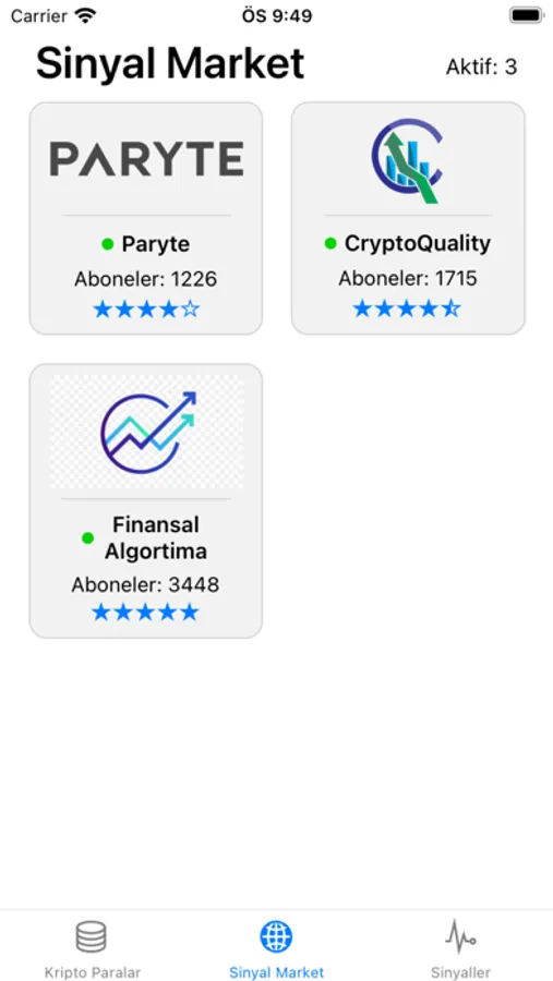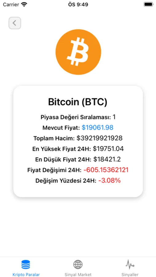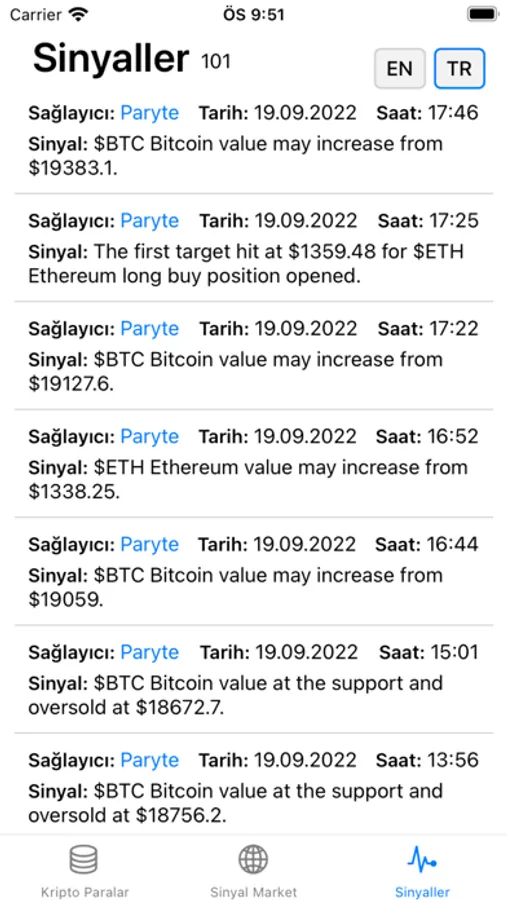 Kullanıcıya, kripto borsaları başta olmak üzere, al-sat sinyalleri sağlayan bir pazaryerini, Türkçe dil seçeneği ile sunan basit bir mobil uygulama.
