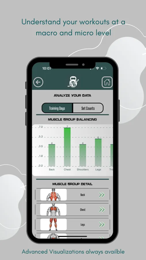 - High level statistics to allow monitoring of muscle group workout distribution and keep your entire body in sync