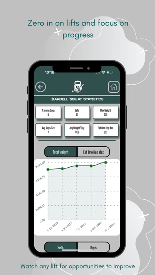 - Advanced statistics at the lift level allowing you to view trend metrics for weight, reps, estimated one rep max, sets and more
