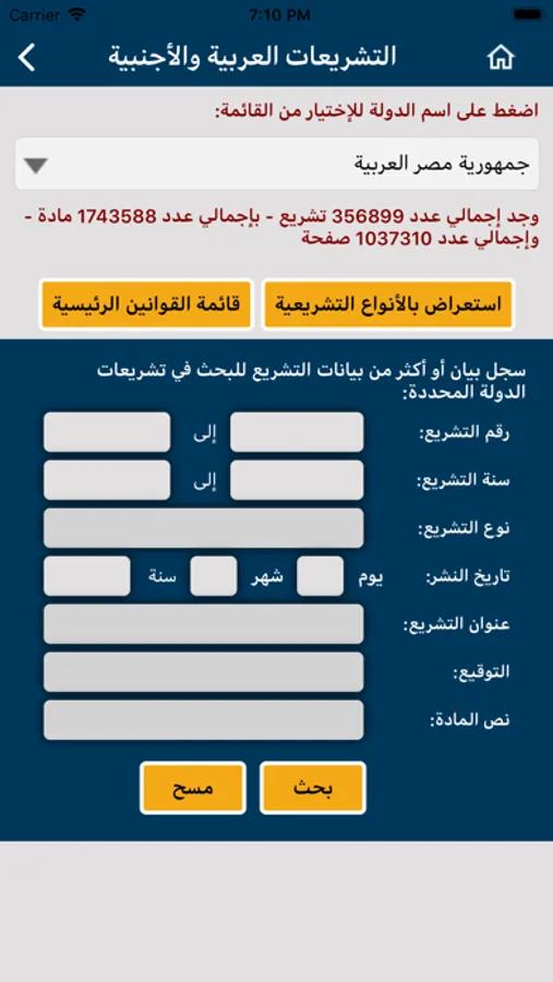 تطبيق يشتمل على قاعدة بيانات تشريعية و قضائية من تشريعات وأحكام قضائية وفتاوي مجلس الدولة والاتفاقيات والمعاهدات العربية والدولية - و العديد من قواعد البيانات المتخصصة ترتبط بمحرك بحث مبميز والعديد من الأدوات المساعدة التي توفر وقت الممارس القانوني في الوصول إلى المعلومة مثال الربط بين نص مادة التشريع وتطبيقاتها من أحكام المحاكم العليا - او العكس - الربط بين الحكم ومادة التشريع - كما يشمل آليات بحث متعددة مع إمكانية نسخ النص القانوني او مشاركته مع الآخرين - انه بحق برنامج متميز يستحق الإستخدام والاعتماد عليه