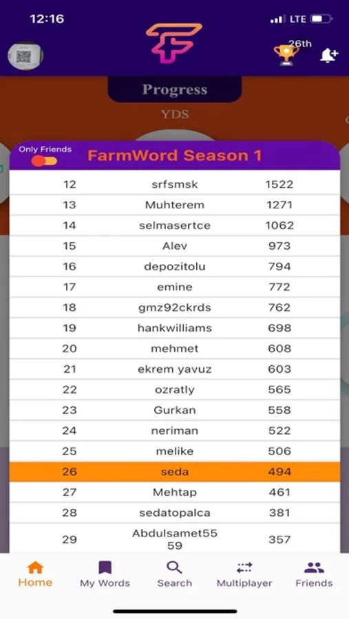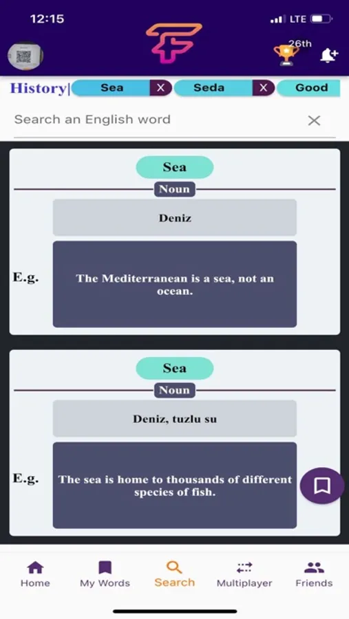 Multiplayer özelliği ile arkadaşlarınızla birlikte oyunlar oynayarak kelime bilginizi yarıştırabilir ve yeni kelimeler öğrenebilirsiniz. Buradaki bilmediğiniz kelimeleri de sonradan pratik yapmak üzere kendi kelime alanınıza kaydedebilirsiniz.
