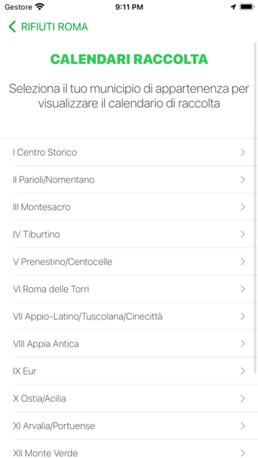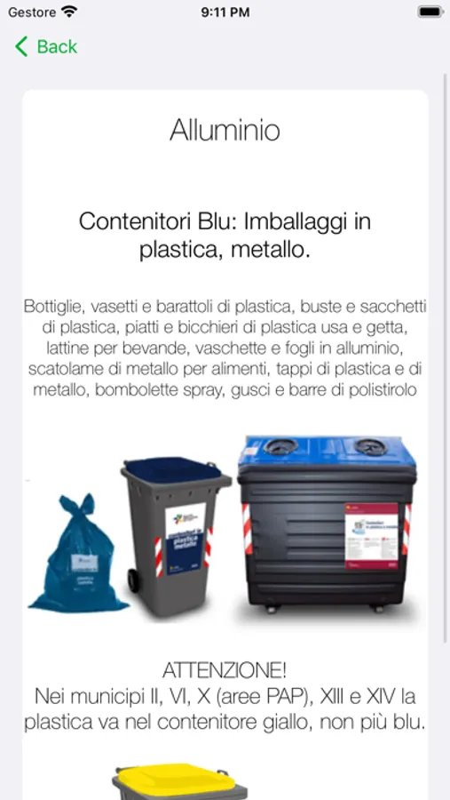 - possibilità di impostare il municipio preferito per conoscere gli orari di raccolta delle varie tipologie di rifiuto;