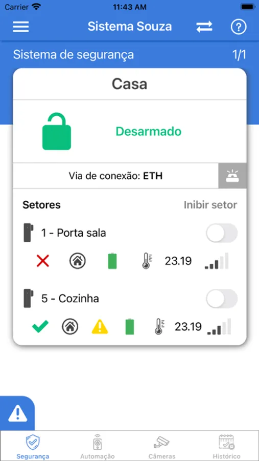 - Realizar ações de segurança como: Arme, Desarme e Arme Interno (Stay) remotamente