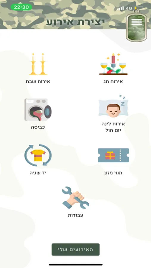 באפליקציה כל האפשרויות מונגשות במקום אחד, כגון: עבודות, אירוח, כביסה, לימוד עברית, שוברי מתנה וכד'.