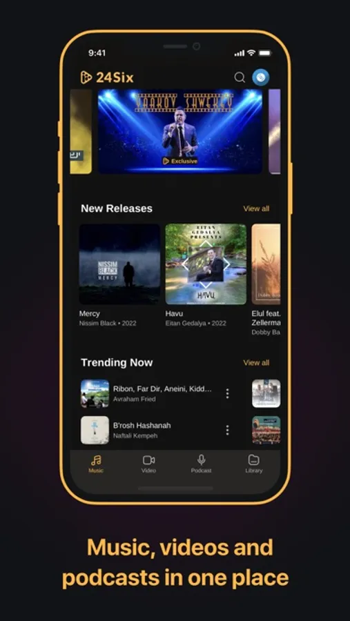 Welcome to 24Six: your music, your podcasts, your videos… all in one incredibly controllable app.