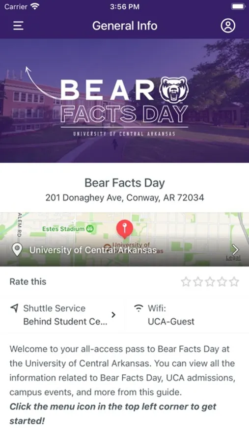 The University of Central Arkansas Campus Engagement app allows you and your family to access all the information you need for our Admissions Preview Day events and your First Year Experience Summer Orientation and Academic Registration. You'll be able to access schedules easily, forms, links, resources and updates while on campus for Bear Facts Day, Admitted Student Open House, SOAR and more! Download the app today for a streamlined UCA campus experience.
