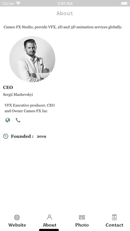 Also our clients can find quick information about our CEO/Executive producer and contacts