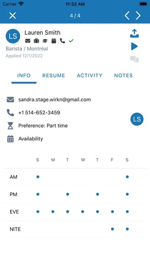 - Sort and view candidate profile, availability, and experience.