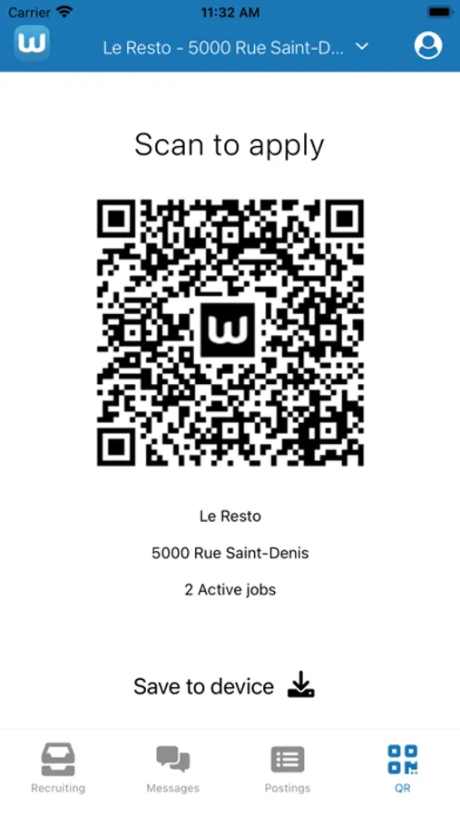 - Quick apply via QR code for each managed location.