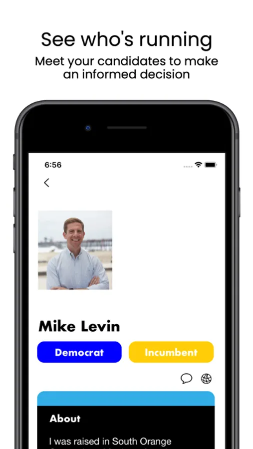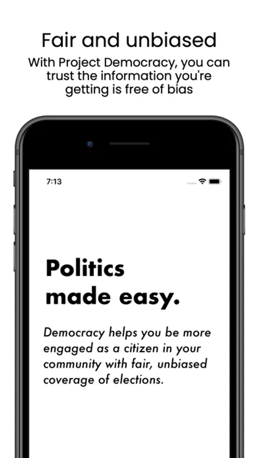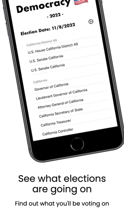 Project Democracy is an app that helps you make informed choices when voting in elections. With information like party, candidate social media feed, biography, candidate website, and more, Project Democracy revolutionizes the voter guide experience. All information within the app is tailored specifically to the location you provide so you can understand who's running for positions that matter most to you.
