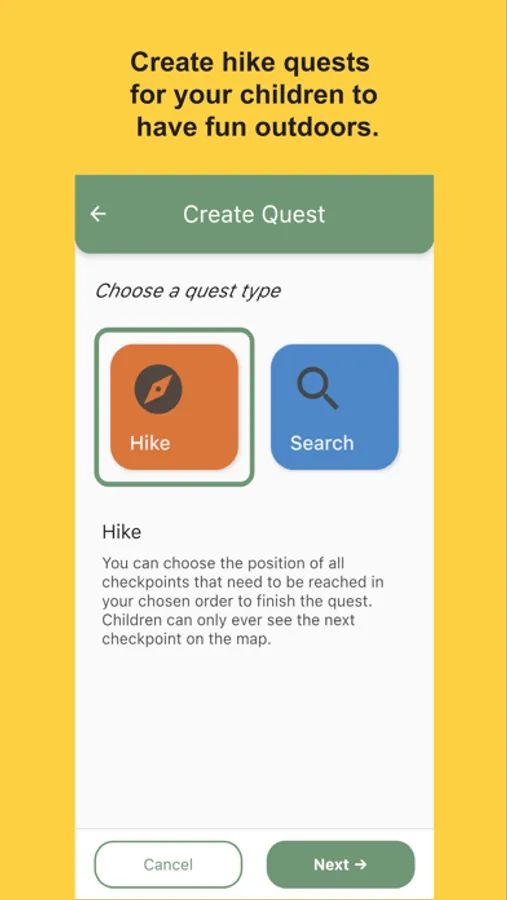 Hike Quest: Create a hike quest by placing markers on the map, and children collect them to complete the quest. Children can see their own position and the position of the markers on the map.