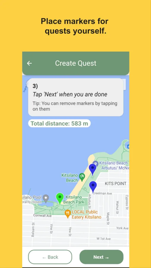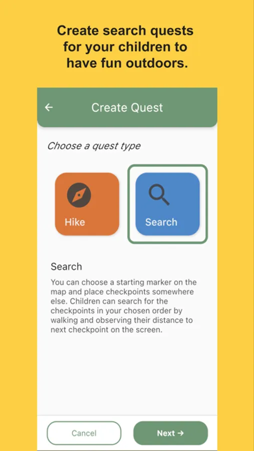 Search Quest: Create a scavenger hunt by placing markers on the map, and children collect them to complete the quest. Children can only see the distance to the next marker, and need to minimize this distance to collect the marker and unlock the next one.