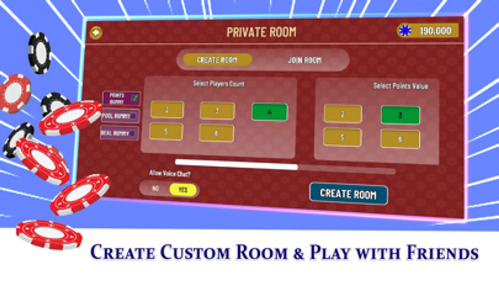 This game includes various variations like Points Rummy, Pool Rummy and Deal Rummy.