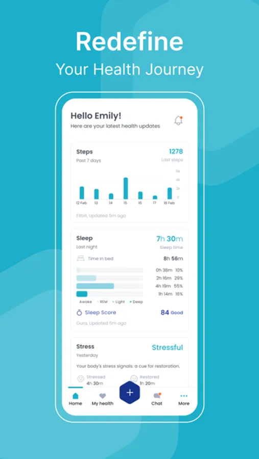 The full list of information that the patient can share with the app is Blood Pressure, Heart Rate, Glucose level, Steps, Physical Exercise (Activity), Weight, Food log, Hydration, Smoking, Sleep, and Alcohol intake. These data can be added manually or via adding Devices and Applications.
