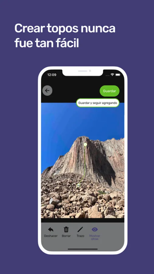 Welcome to the first version of Andescalada App. With this app you'll be able to take a picture of cliff and draw the line where the route goes. You can log the grade and kind of route all with the tip of your finger!.