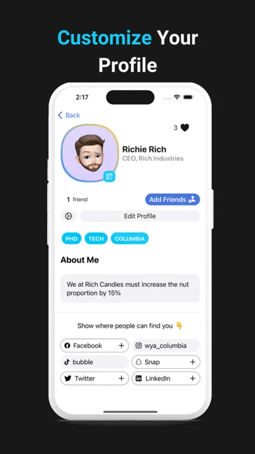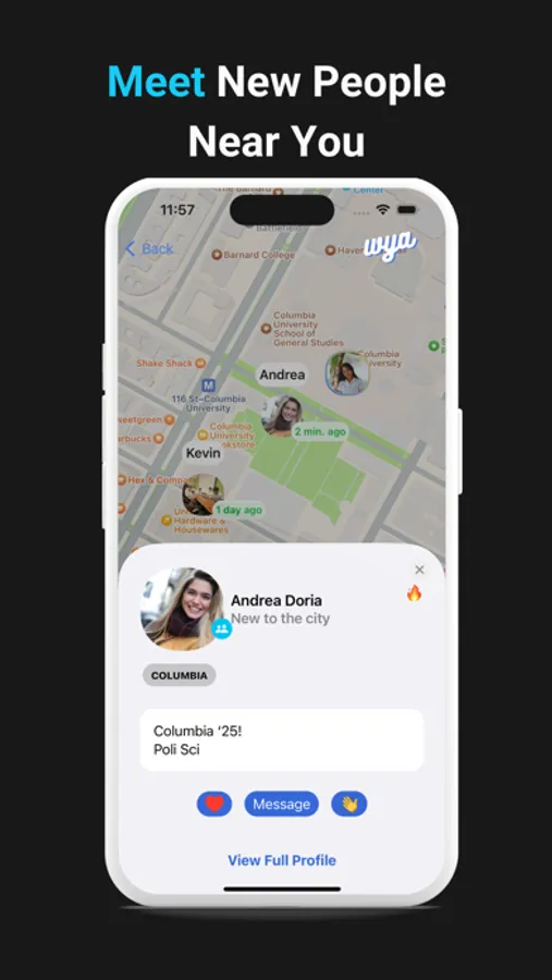 We believe that the most genuine connections happen in real life, so wya is designed to break down barriers by showing who is around you in real-time, and the things you have in common.