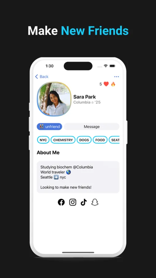 • easily meet new people near you who share your interests or passions and connect with them instantly