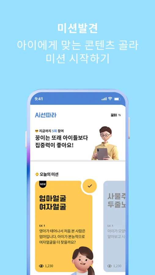 - 아이에게 맞는 콘텐츠를 골라 미션을 시작해보세요.