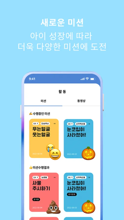 - 아이 성장에 따라 더욱 다양한 미션에 도전해보세요.