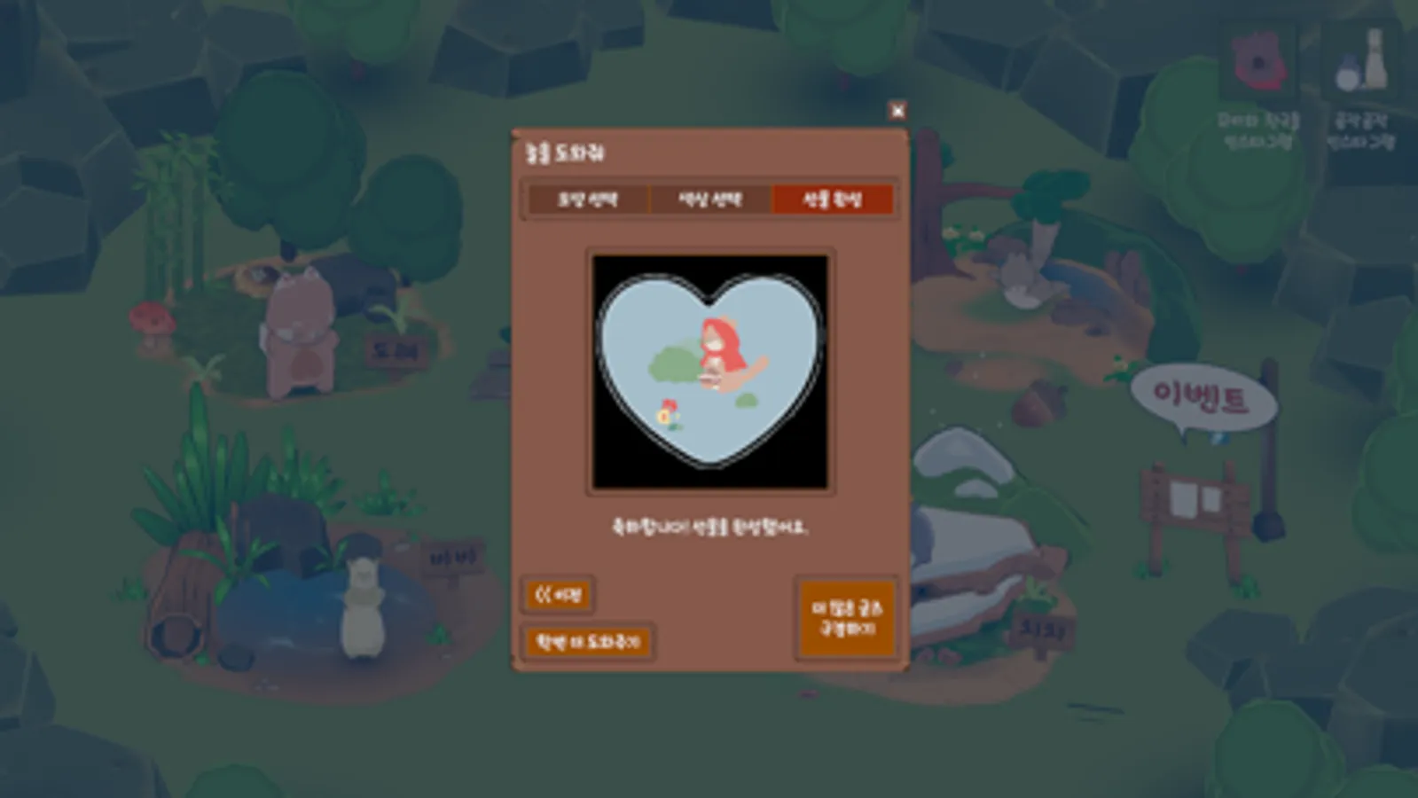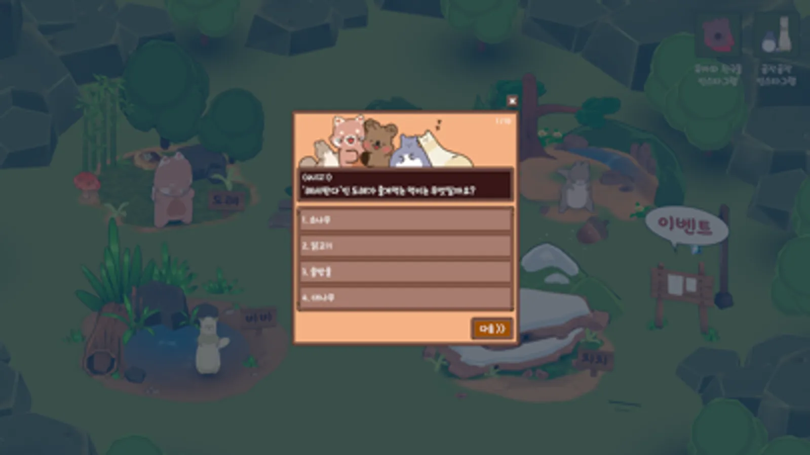 멸종위기 동물을 모티브로 한 메타버스기반의 앱으로서 멸종위기 동물 뀨카(쿼카), 늘(하늘다람쥐), 도레(레서판다), 비비(페럿), 치치(친칠라)의 정보를 대화식으로 알려주는 앱. 또한 선물 만들기, 미니게임, 퀴즈를 풀어가면서 쉽고 재미있게 멸종위기 동물을 알아갈 수 있는 앱. 추가적으로 관련 상품들도 쉽게 구매할 수 있도록 한 앱.