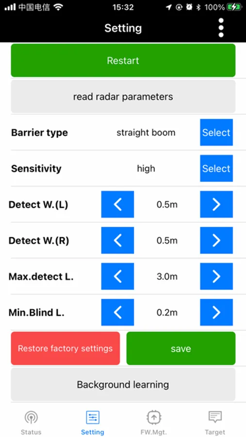 The gate anti-smashing radar is developed for the needs of entrance and exit management applications such as parking lots and underground garages. By working with the main control board of the gate machine, it can accurately control the rise and fall of the gate lever, and at the same time, it can effectively avoid the "accidental injury" of the gate lever to the target passing through the radar field of view. Realize intelligent anti-smashing.