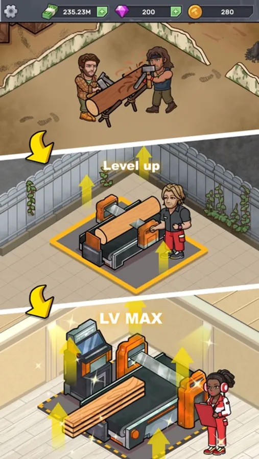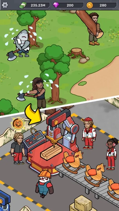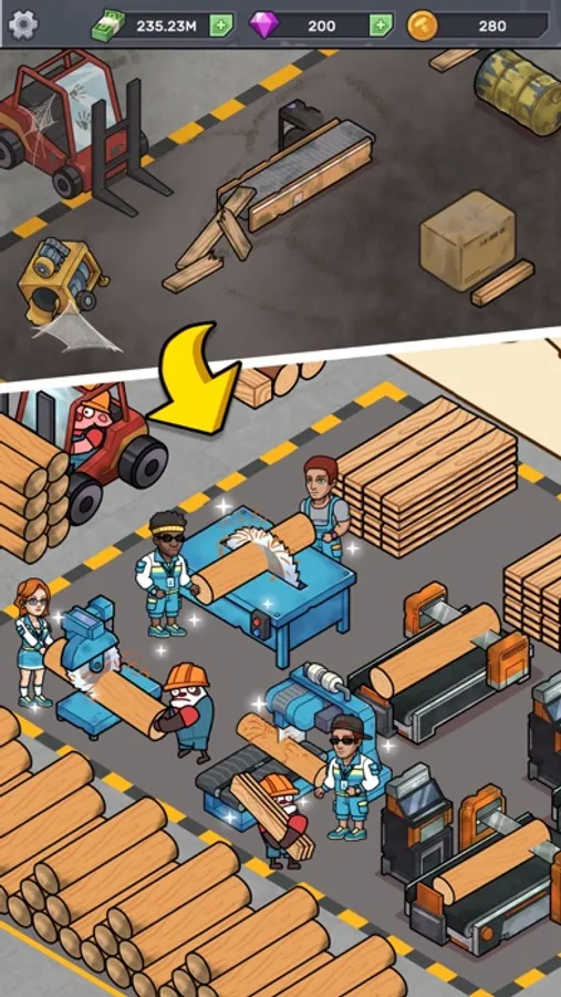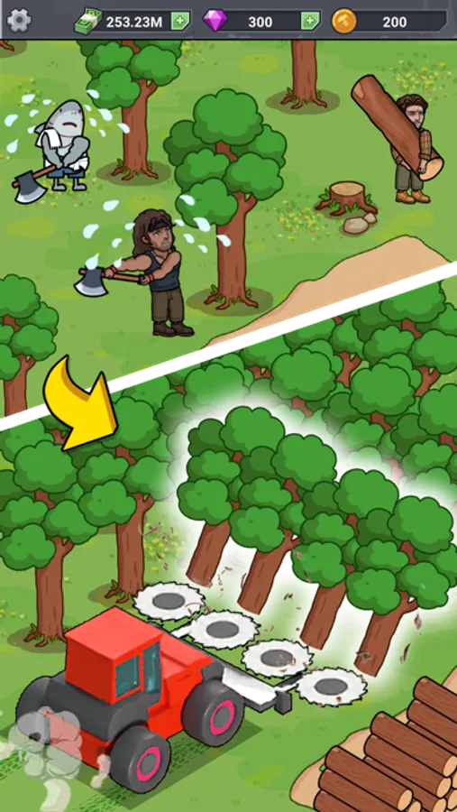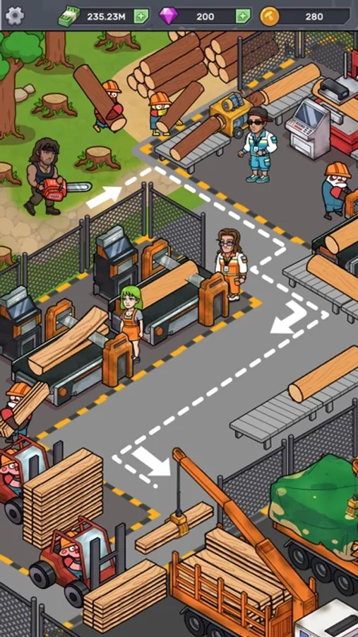 Welcome to Lumber Out, an idle forest lumber simulation game. Here you'll have your new factory, strong workers, and a barren forest. But don't worry, just with a tap of your finger, and soon you'll be able to develop your own lumber empire!