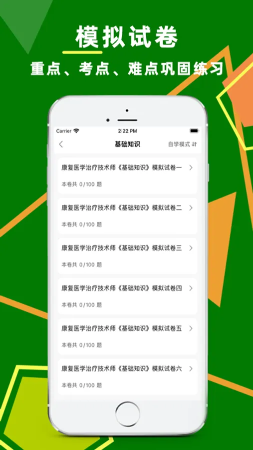 本软件适合全国卫生专业技术资格考试,康复医学治疗技术(士、师、中级),精心准备了考试题库,每一道试题都有答案解析,为考试的提供了充分的复习准备,可随时随地学习练习,有效帮助顺利通过考试,学习知识通过考试必备神器!
