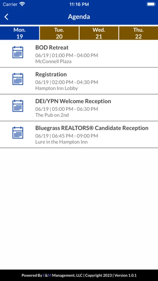 - View agendas for meetings, networking opportunities and more