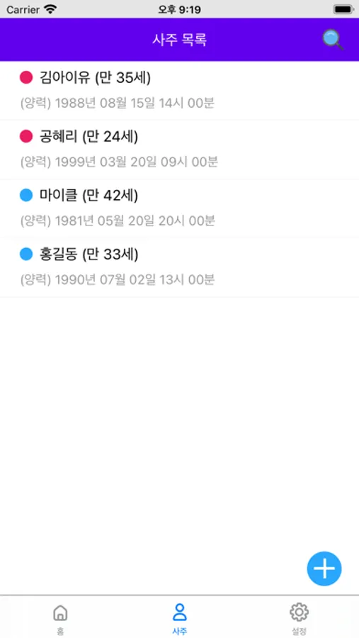 사주목록에서 찾기로 원하는 사주명을 찾을 수 있습니다.