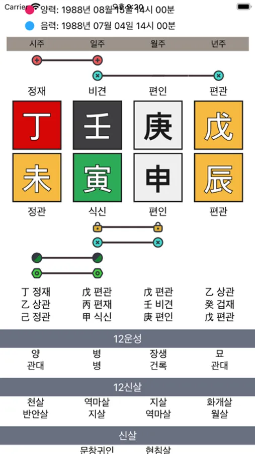 천간의 합충, 지지의 합,충,원진,귀문,형살등을 한 눈에 판단할 수 있도록
