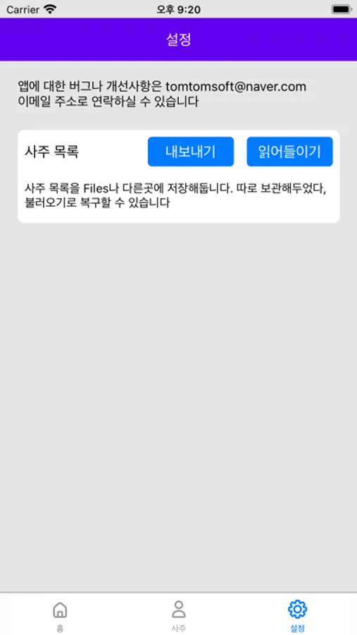 사주리스트 따로 보관해두기와 가져오기를 지원하여, 폰 분실이나 앱 삭제후에도
