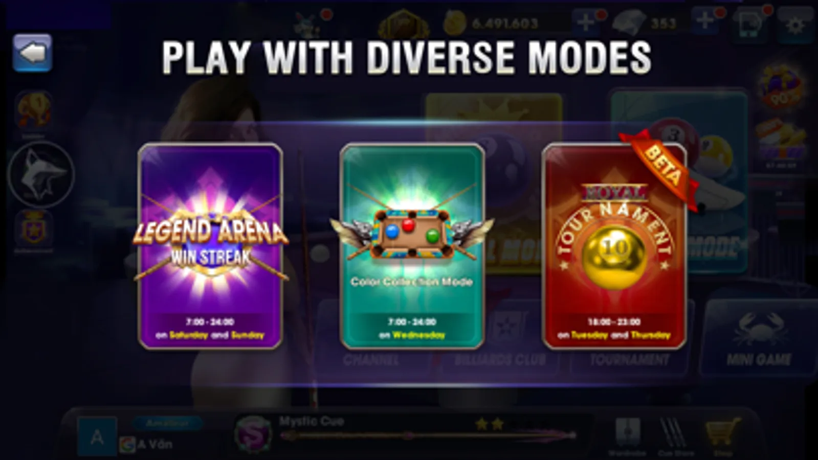 - Let's join and challenge other billiards fans through the competitive tournaments.