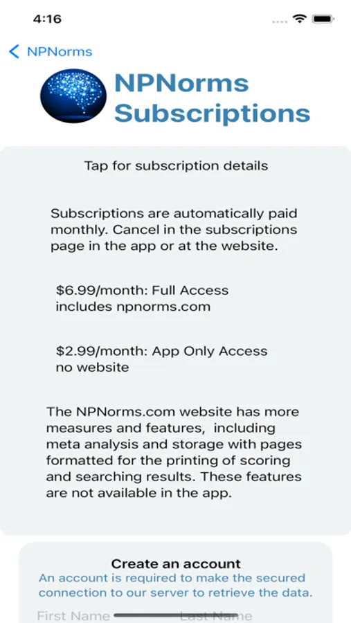 Instant access to the most comprehensive, ethnically diverse, and current neuropsychological normative database for clinical and research settings. This simple, straightforward tool allows you to quickly search appropriate norms from peer-reviewed studies, and easily convert raw scores into normative scores for your clients and research groups. A subscription required, $6.99/month for full access including npnorms.com website, or $2.99/month for app only. We Also provide free subscriptions for students. Terms of Use: https://www.apple.com/legal/internet-services/itunes/dev/stdeula/